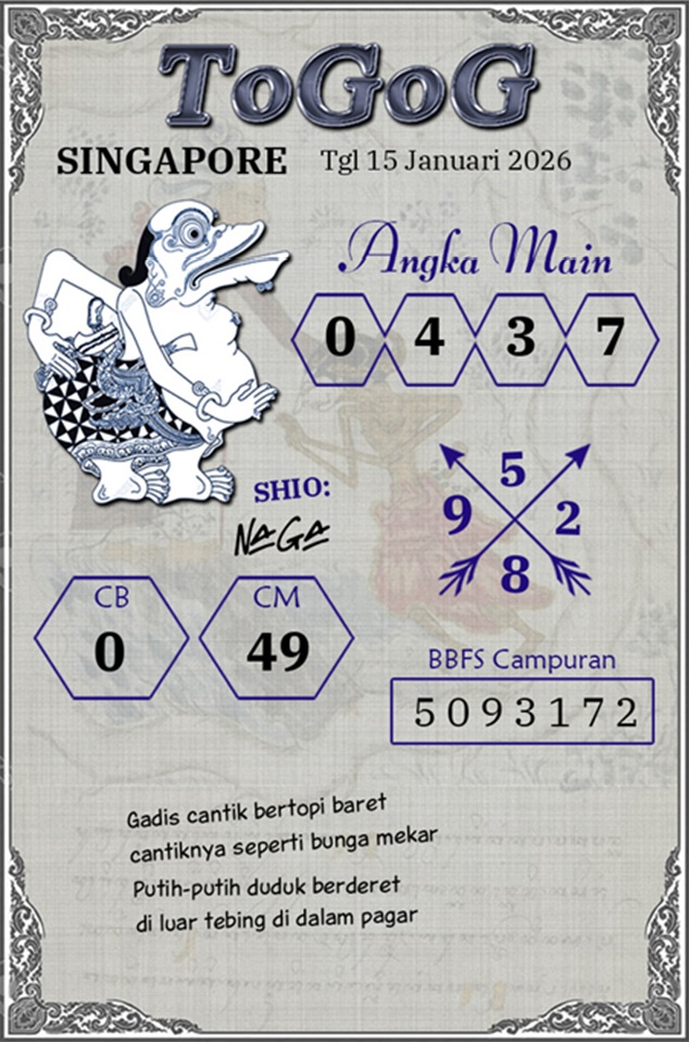 Syair Singapore Hari Ini adalah racikan angka main atau prediksi Syair SGP dari Live Result SGP